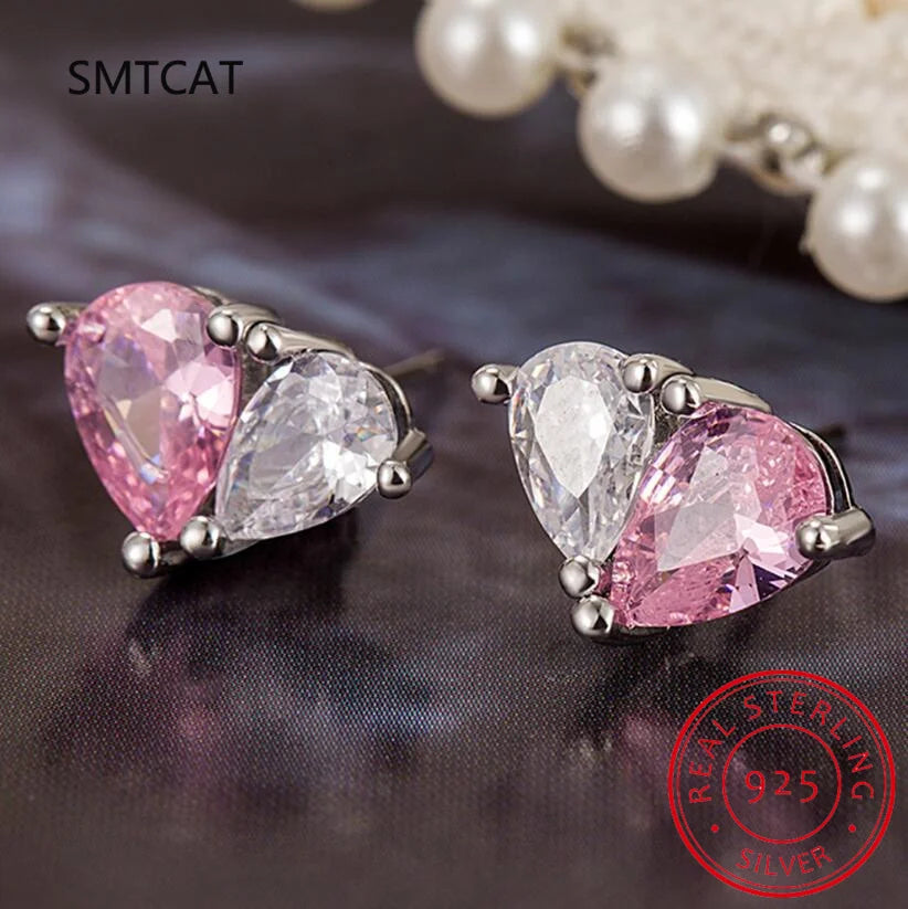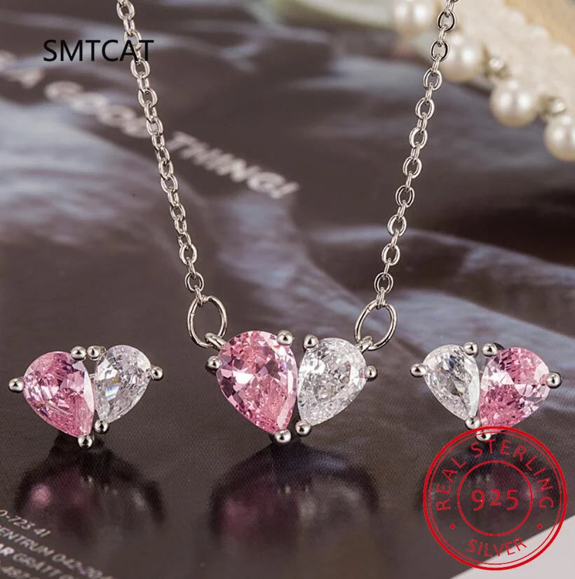 Herz-Schmuckset aus 925 Sterling Silber mit rosa und weißen Zirkonia-Steinen - Halskette und Ohrringe von Lunina