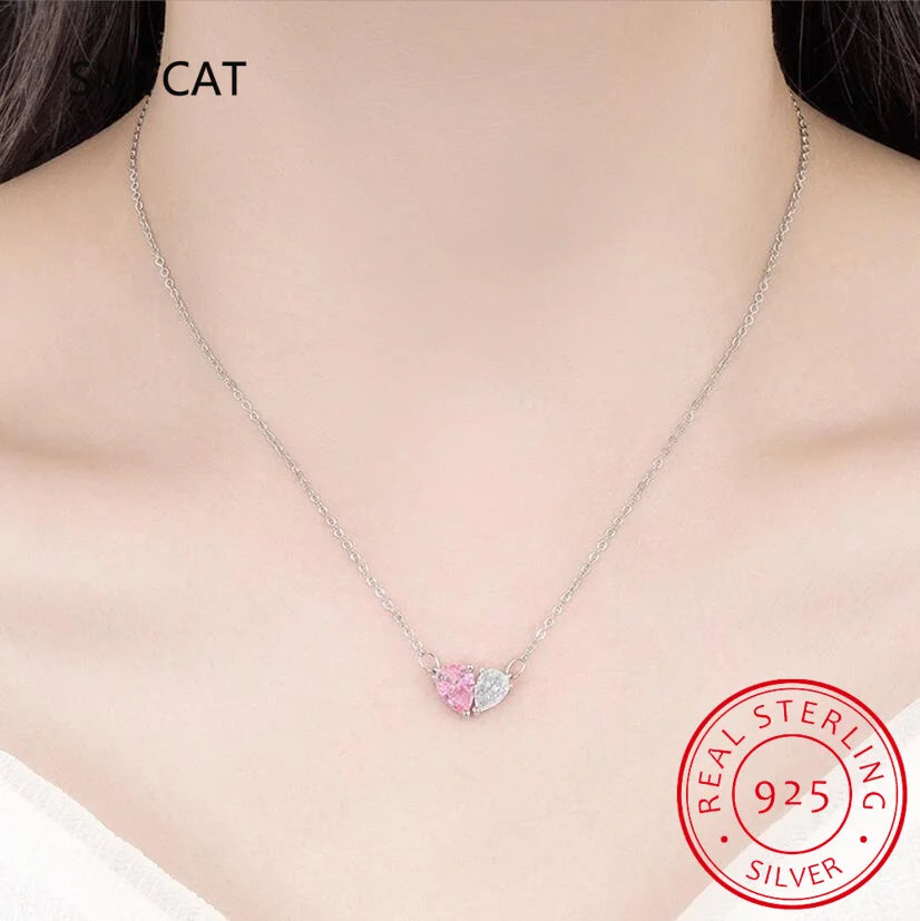 925 Silber Herz-Halskette mit rosa und weißen Zirkonia-Steinen - Love & Sparkle Schmuckset