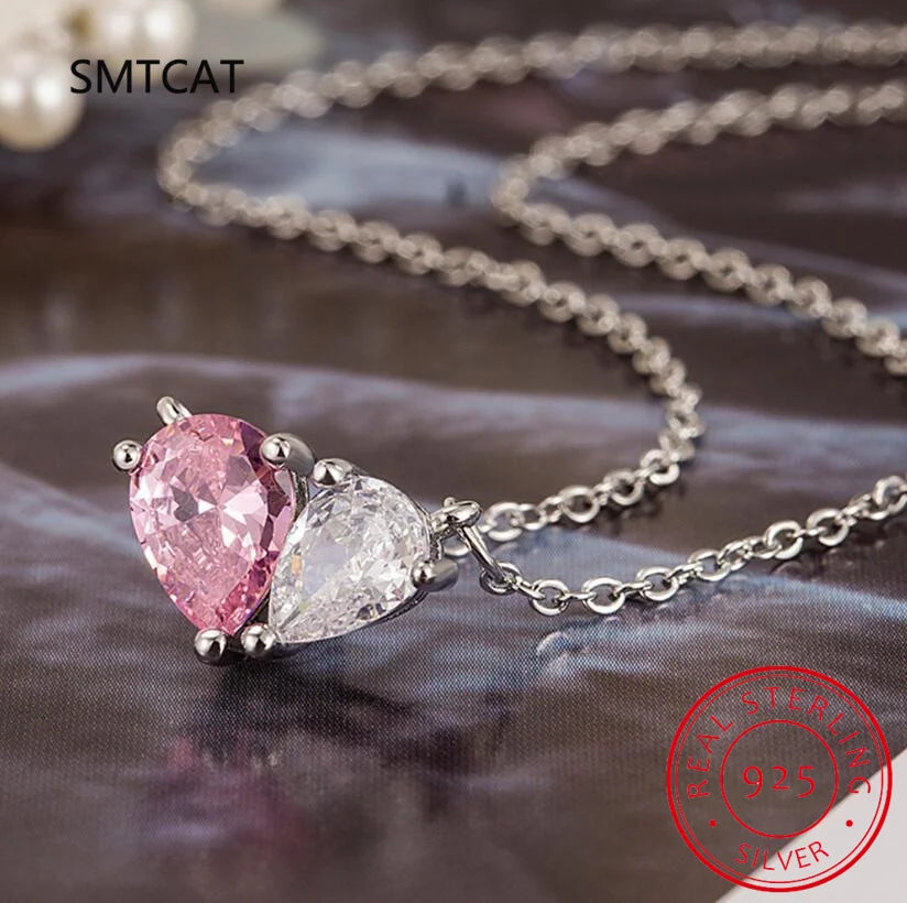 Dieses zauberhafte Set besteht aus einer romantischen Herz-Halskette und passenden Ohrringen, verziert mit funkelnden rosa und weißen Zirkonia-Steinen in Wassertropfen-Form. Perfekt für besondere Anlässe oder als Geschenk für einen geliebten Menschen.