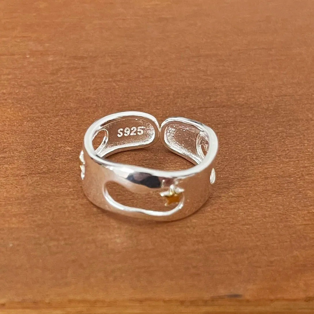 Ein eleganter Ring mit filigranen Stern-Details, gefertigt aus echtem 925 Sterlingsilber, der deinem Look eine besondere, strahlende Ausstrahlung verleiht.